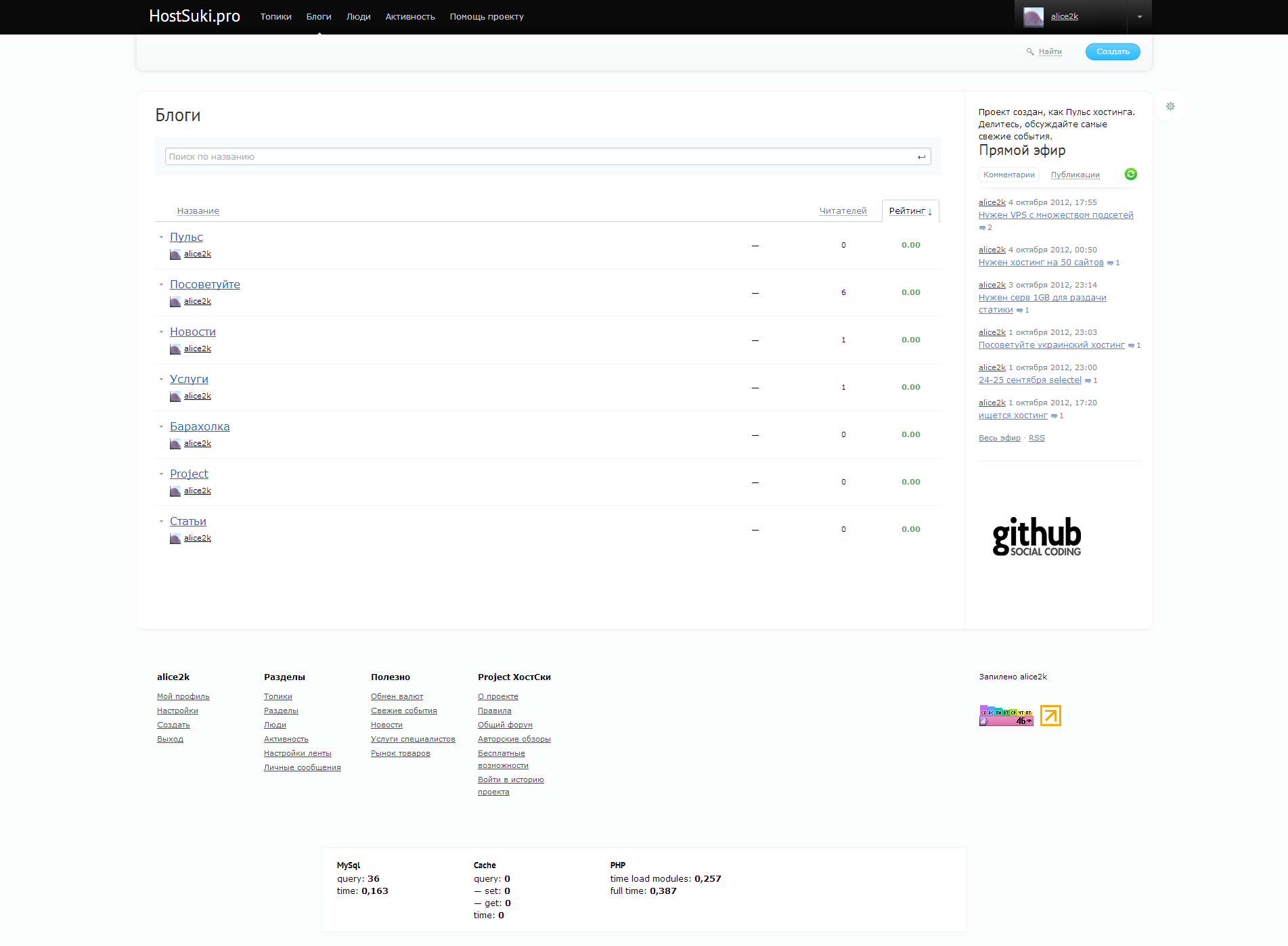 В будущем еще будет Хабр о хостинге, на еще одном домене из нашей системы. Создан как Пульс хостинга, и еще можно почитать это и это.